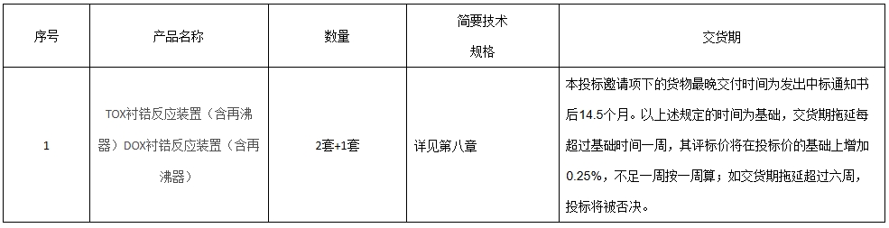 1.1 項(xiàng)目概況:TOX襯鋯反應(yīng)裝置(含再沸器)DOX襯鋯反應(yīng)裝置(含再沸器) 2套+1套 (詳見招標(biāo)技術(shù)文件)